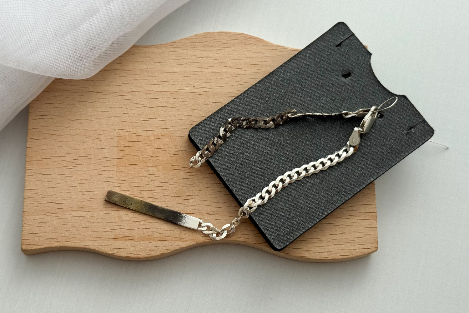 As peças falsas ou que usam ligas mais frágeis costumam deformar, quebrar, elos se rompem ou trincam com muito menos esforço. Já a prata autêntica consegue manter sua estrutura mesmo com o tempo e o uso contínuo.