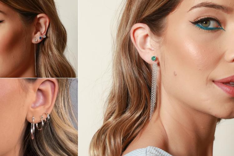 Uma ótima maneira para usar os brincos de prata 925 com corrente é combiná-los com os brincos do modelo ear cuff ou ponto de luz.