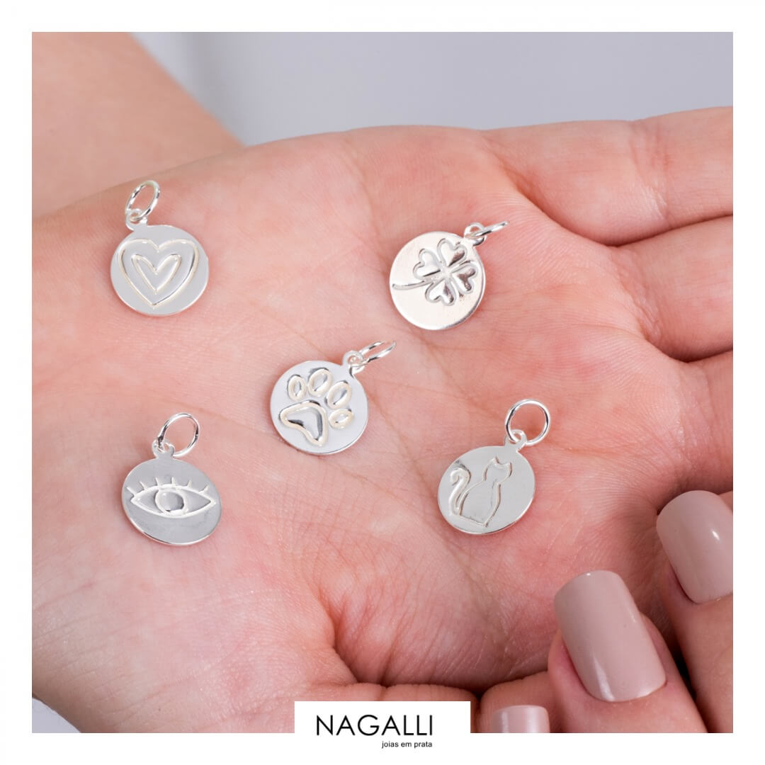 Mão feminina segurando medalinhas de pingente de Prata 925